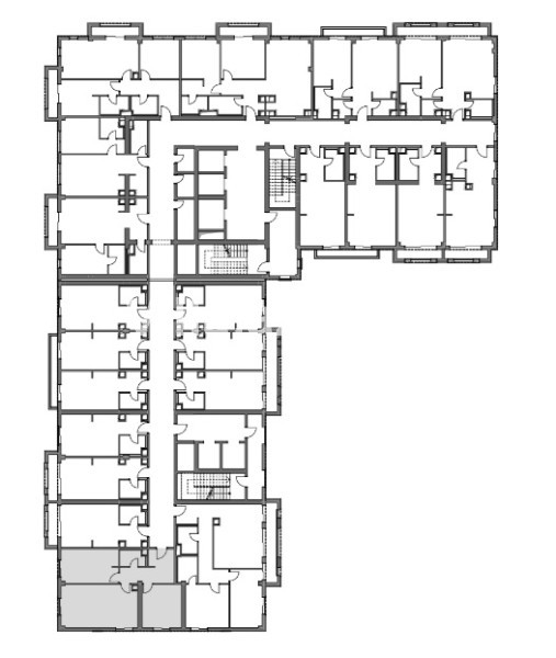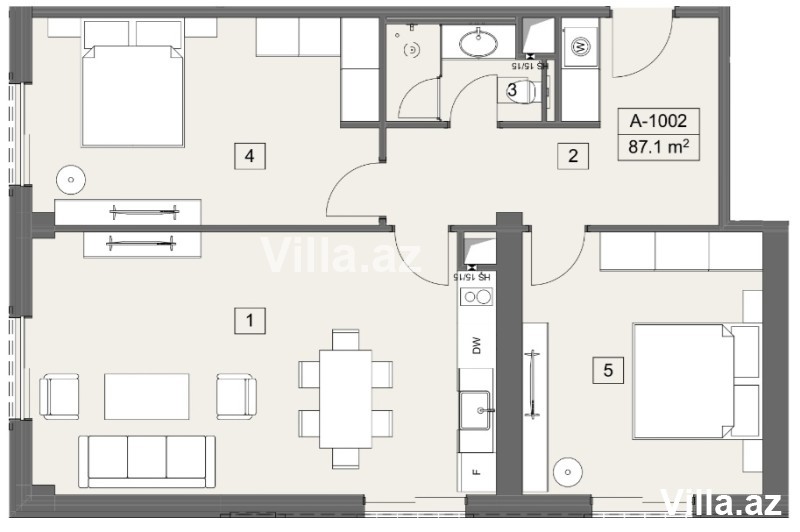 Ümumi sahəsi 87.11 m², 3 otaq (studiya və 2 yataq otağı), 1 sanitar qovşağı, dəhliz.