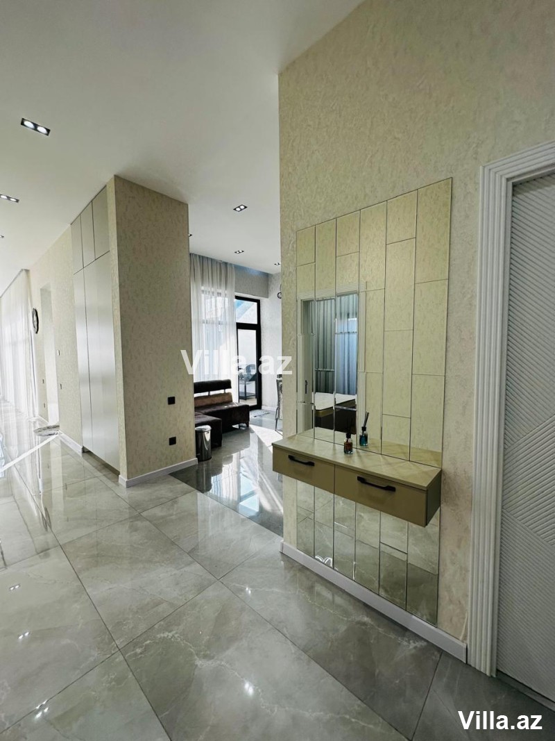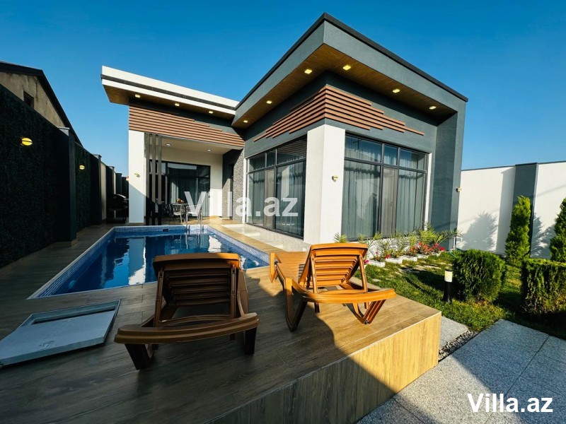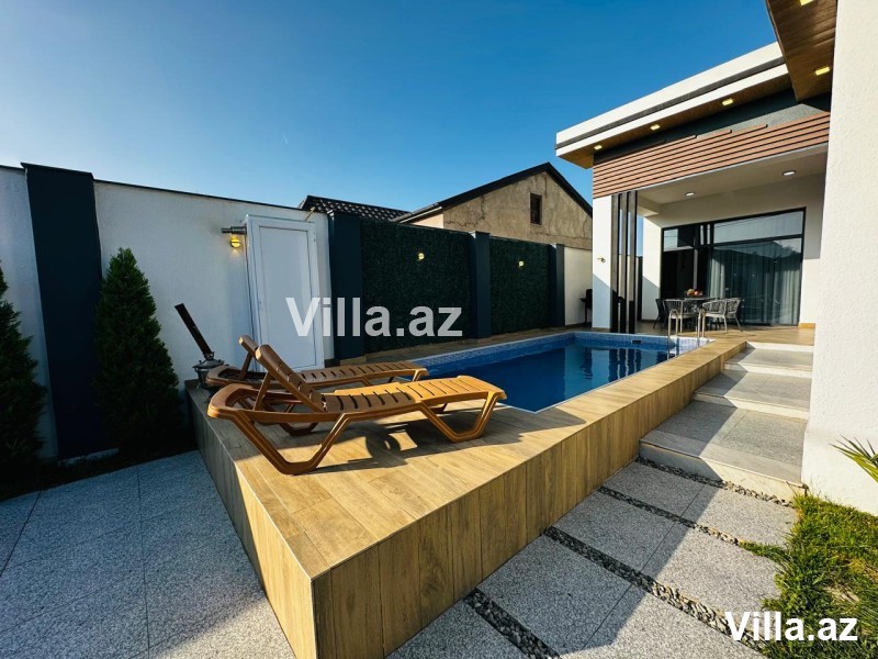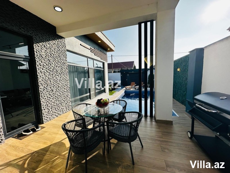 Həyətində hovuz, manqal yeri, yay–qış istifadə üçün bisetka, əlavə sanuzel, dekorativ ağaclar və distansion idarə olunan darvaza var. Qaz, işıq və su daimidir.