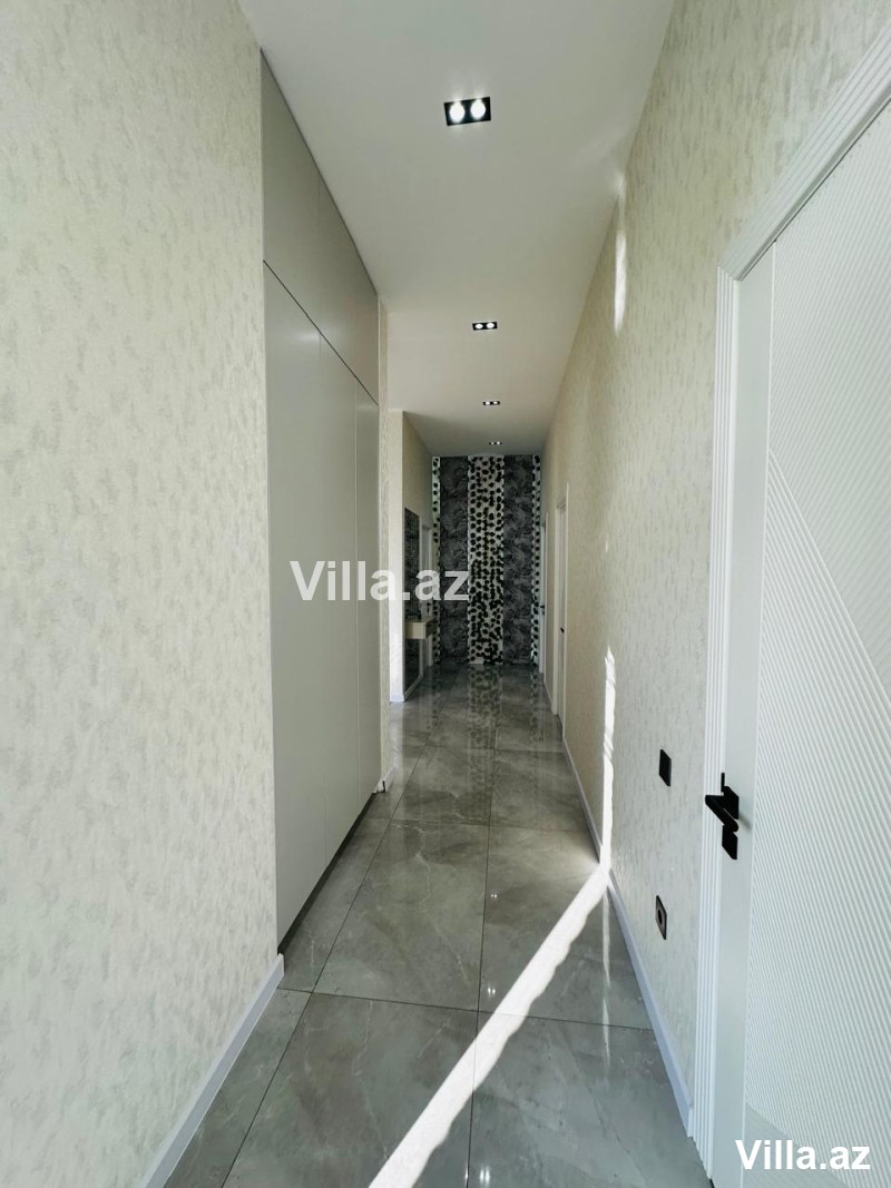 Evdə holl, geniş zal, mətbəx, 3 yataq otağı, 2 sanitar qovşağı və qarderob mövcuddur.