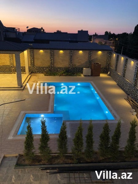Mərdəkan həyət evləri arasında unikal dizayn, komfort və keyfiyyət üstünlüyü ilə fərlənən villa bag satılır. Mərdəkan, Bravo marketdən 500 metr məsafədə 12 sot torpaq sahəsində 2 mərtəbəli mini stadionlu yeni villa ev. Ümumi yaşayış sahəsi 500 kv/m, 6 otaq, qarderob, 3 sanitar qovşağı mövcuddur. Hovuz, sauna, oyun meydançası, besedka, qaraj, manqalxana və yay qış mətbəxi var. Bütün mərtəbələrdə isti döşəmə sistemidir. Kamin var. Ağıllı ev və kamera nəzarət sistemi movcuddur. WI-FI ilə suvarma sistemi. 15 kv 3 faza, Qazanxana, 3 ədəd kombi və 16 tolnuq yeraltı ehtiyyat su anbarı. Su, qaz, işıq daimi. Ev şəxsi yaşayış üçün inşa edilib.