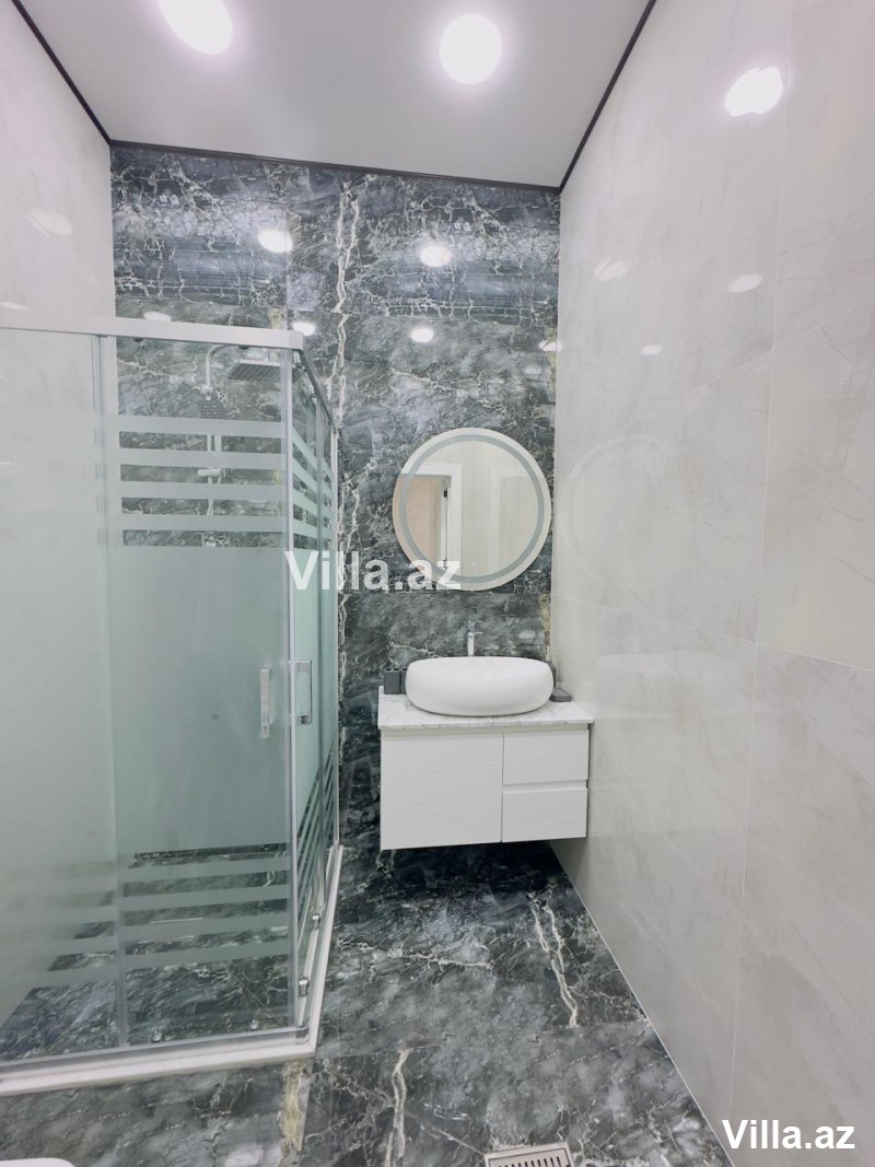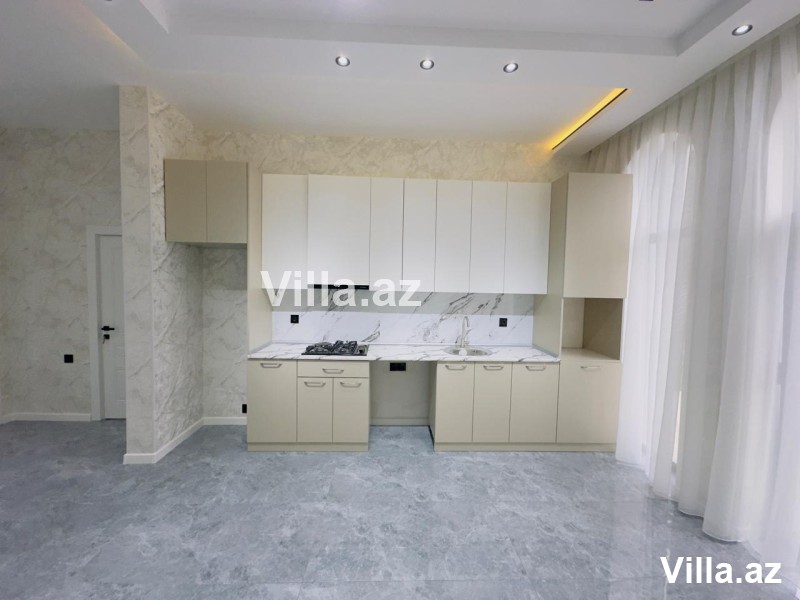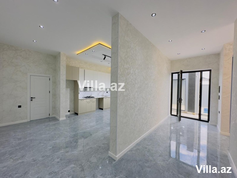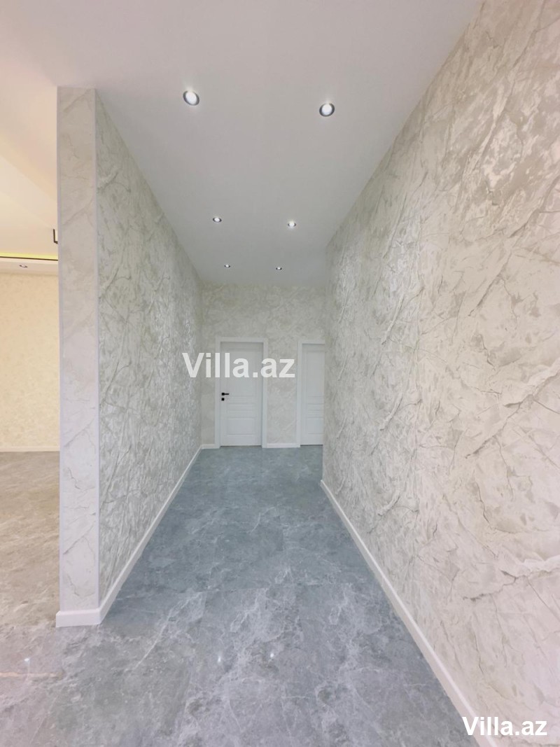 Mərdəkanda yeni 1 mərtəbəli ev satılır. 3 sot torpaq sahəsində tikilmiş evin ümumi sahəsi 140 kv.m-dir. Evdə holl, 1 zal, 3 yataq otağı, mətbəx və 2 sanuzel var. Həyətində hovuz, manqalxana, besedka, sanuzel, işıqlandırma sistemi, dekorativ ağaclar və distansion qapı mövcuddur. Qaz, su, işıq daimidir. Sənədləri tam qaydasındadır, kupça var.