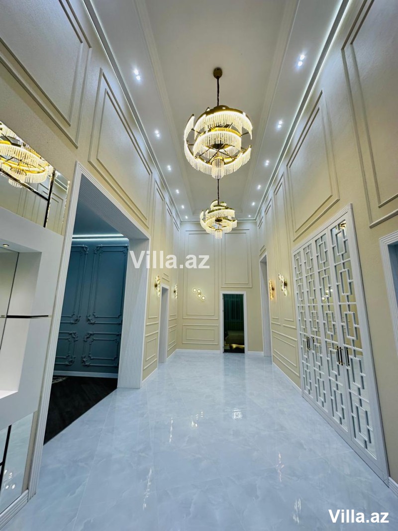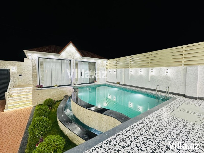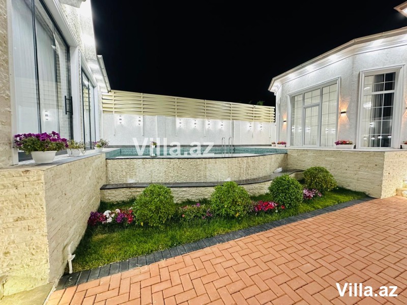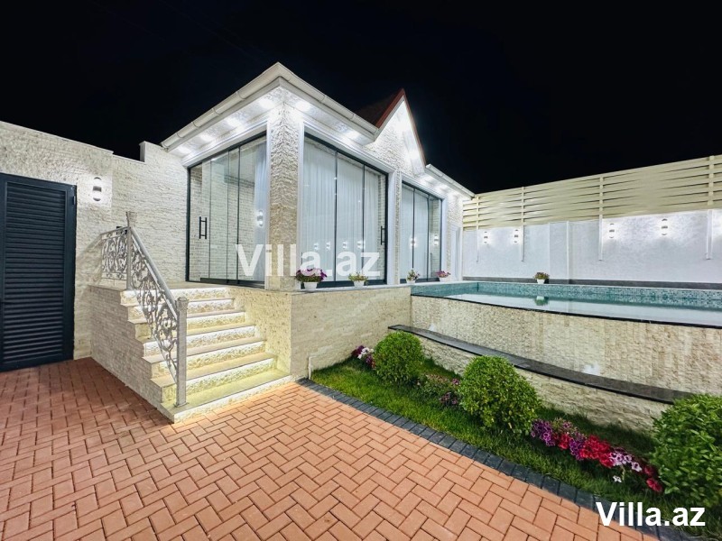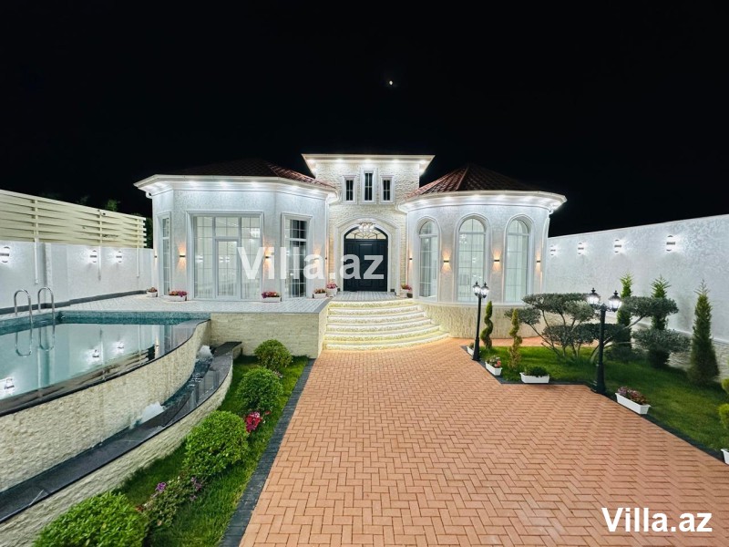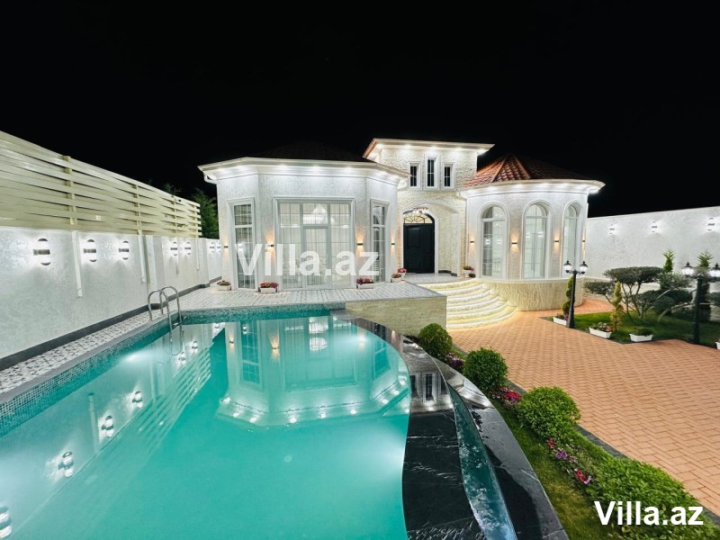 Mərdəkan qəsəbəsində Bravo supermarket yolunda "Ağ ev" tərəfdə gözəl villa satılır. Villa 550 m2 torpaq sahəsində inşa edilib və 230 m2 yaşayış sahəsinə malikdir. 1 mərtəbəli modern bağ evi 4 yataq otağı, qonaq otağı, 3 sanitar qovşağı və mətbəxdən ibarətdir. Yeni mətbəx mebeli və yataq mebeli mövcuddur. İstilik sistemi isti döşəmə. Həyətyani sahədə üzmə hovuzu, yay qış mətbəxi, manqalxanası mövcuddur. Su, qaz, elektrik daimi. Evin daxili və xarici dekorasiyası xüsusi zövq ilə təmir edilib. Sənədlər qaydasında.