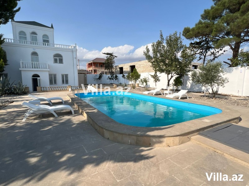 Həyət evi / Villada bunlar var: 2 zalı, 3 yataq otağı, 5 sanuzeli var 3-çü hamamdır, 1-ci və 3-cü mərtəbələrin ətrafı açıq terrassdır (verandadı), işıq, şirin su daimadır, qaz keçir yanından yalnız qoşulmayıb, amma qoşmaq mümkündür, konalizasiya şanbodur, Villa kondisionerlə qızdırılır, həyətində manqalnıy və dincəlmək üçün fiestalı baseyn mövcuddur, meyvə və dekorativ ağacları əyləncə üçün qazonu var, əsil Dəniz havalı dincəlməli məkandır. Həyət evi / Villa çox təcili satıldığı üçün xahiş olunur yalnız real ciddi alıcılar mürüciət etsinlər.Əlavə sualları olan alıcılar zəng ya vahsap vasitəsi ilə maraqlana bilər.